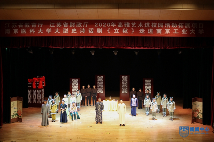 9月20日晚,江蘇省教育廳、財政廳2020年高雅藝術進校園活動拓展項目——大型史詩話劇《立秋》在我校博雅堂舉行專場演出,400余名師生到場觀看。