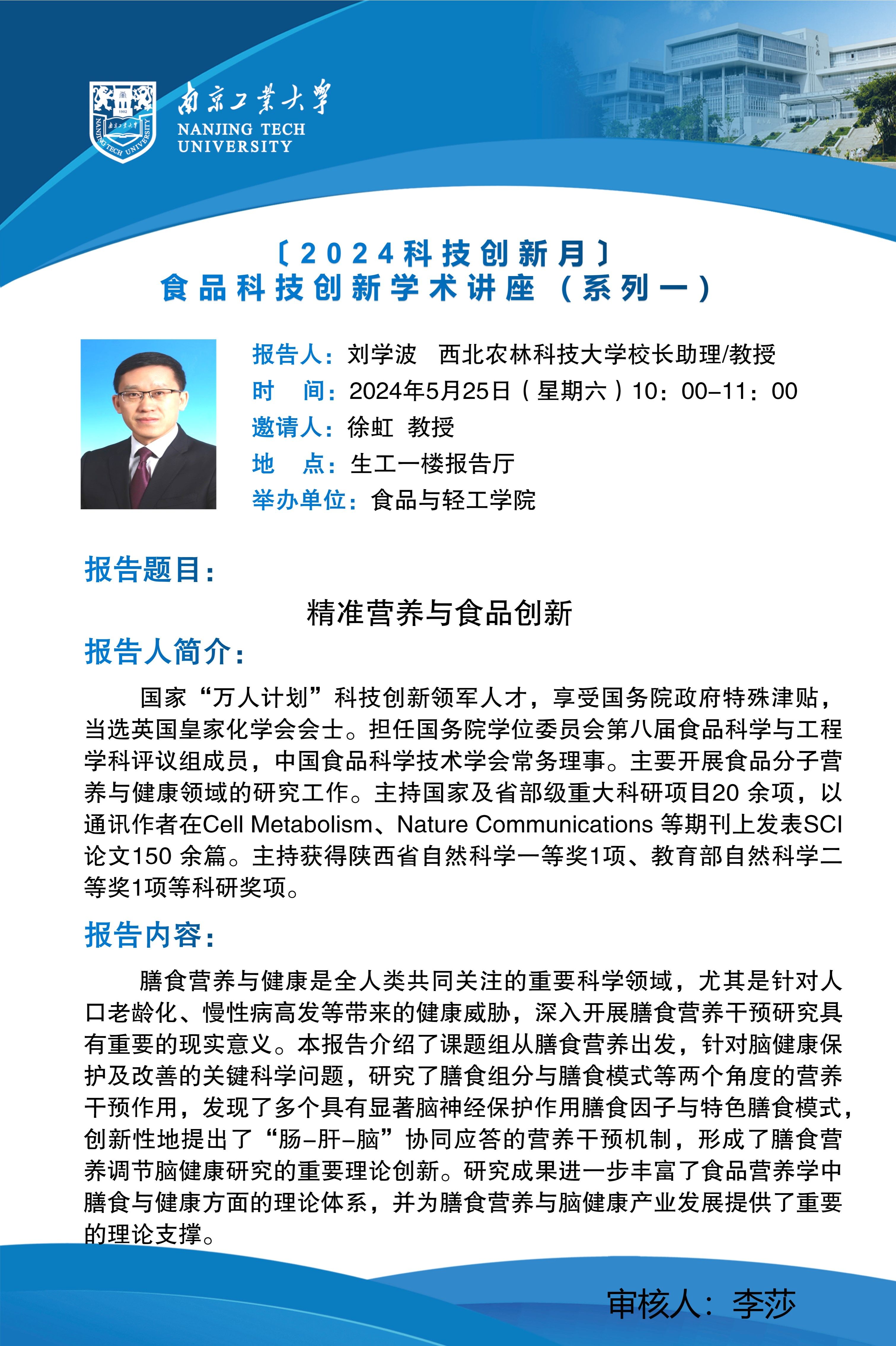 〔2024科技創(chuàng)新月〕食品科技創(chuàng)新系列學術講座