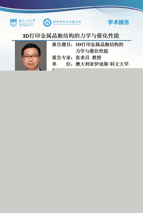 報(bào)告題目:3D打印金屬晶胞結(jié)構(gòu)的力學(xué)與催化性能