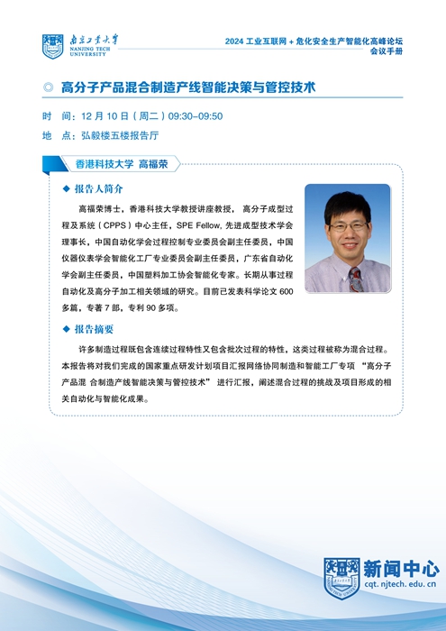1 | 高福榮 | 香港科技大學(xué) | 高分子產(chǎn)品混合制造產(chǎn)線智能決策與管控技術(shù) |
