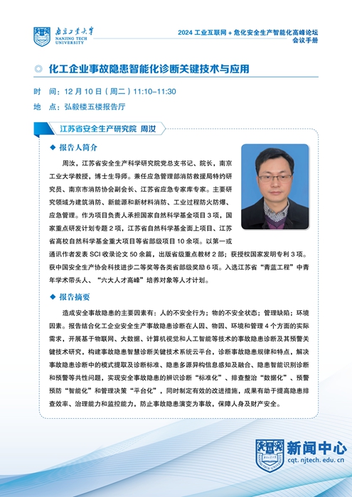 6 | 周 汝 | 江蘇省安全生產(chǎn)研究院 | 化工企業(yè)事故隱患智能化診斷關(guān)鍵技術(shù)與應(yīng)用 |