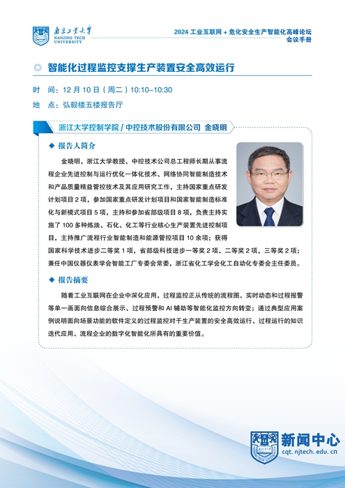3 | 金曉明 | 浙江大學(xué)、中控技術(shù)公司 | 智能化過程監(jiān)控支撐生產(chǎn)裝置安全高效運(yùn)行 |