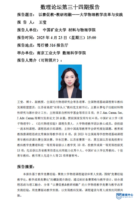 報(bào)告題目:以賽促教?教研相融——大學(xué)物理教學(xué)改革與實(shí)踐