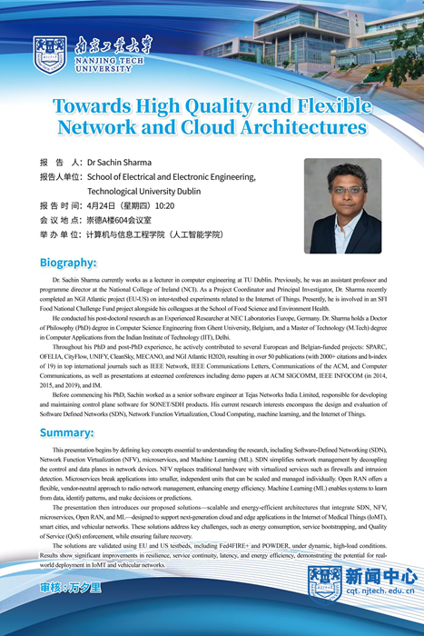 Before commencing his PhD, Sachin worked as a senior software engineer at Tejas Networks India Limited, responsible for developing and maintaining control plane software for SONET/SDH products. His current research interests encompass the design and evaluation of Software Defined Networks (SDN), Network Function Virtualization, Cloud Computing, machine learning, and the Internet of Things.