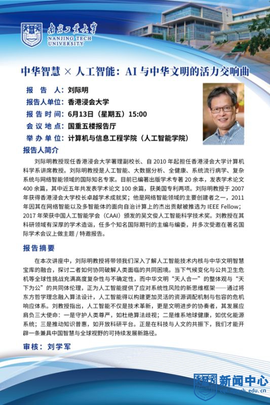 在本次講座中,劉際明教授將帶領我們深入了解人工智能技術內核與中華文明智慧寶庫的融合,探討二者如何協同破解人類面臨的共同困境。當下氣候變化與公共衛生危機等全球性挑戰充滿高度復雜性與不確定性,而中華文明“天人合一”的整體觀與“天下為公”的共同體倫理,正為人工智能提供了應對系統性風險的新思維框架——通過將東方哲學理念融入算法設計,人工智能得以構建更加靈活的資源調配機制與包容的危機響應體系。劉教授指出,人工智能不僅是技術革新,更是文明進步的協奏者,其發展應肩負三大使命:一是守護人類尊嚴,如杜絕算法歧視;二是維系地球健康,如優化能源系統;三是推動知識普惠,如開放科研平臺。正是在科技與人文的共振下,我們才能開辟一條兼具中國智慧與全球視野的可持續發展新路徑。