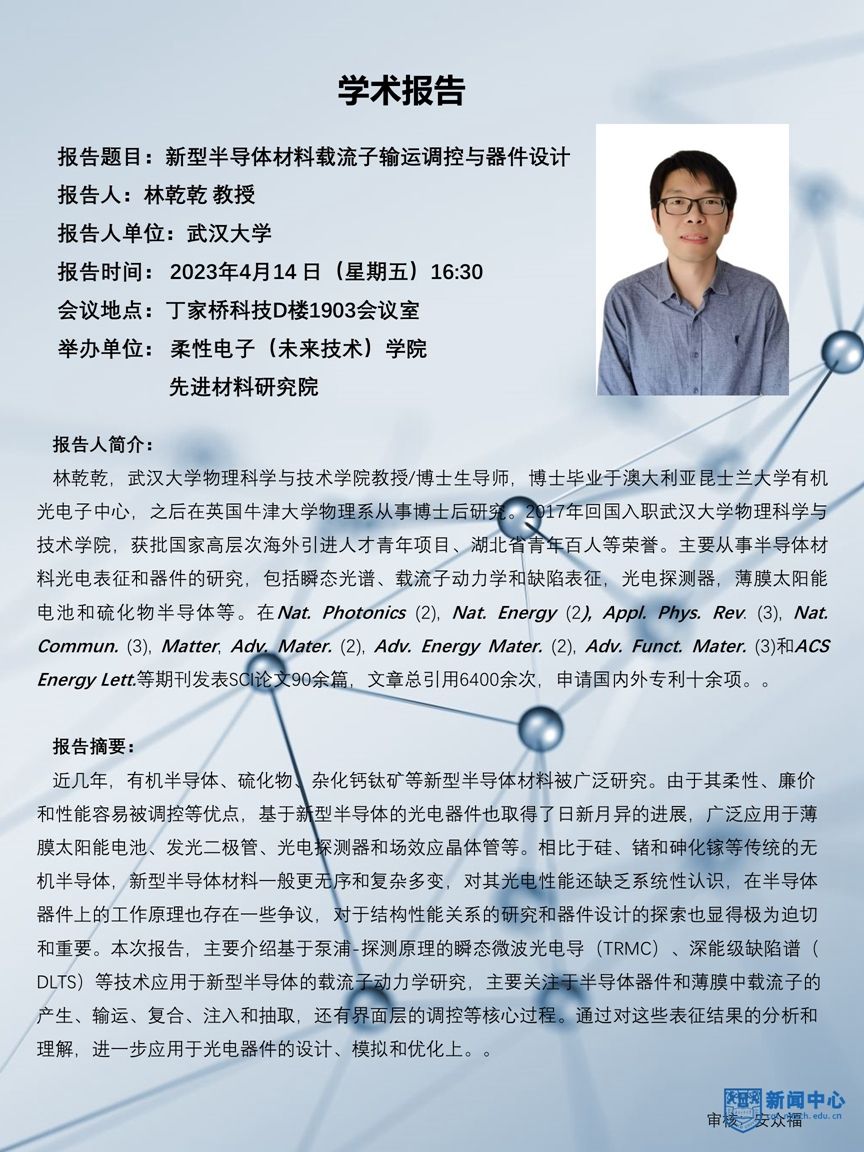 舉辦單位: 柔性電子(未來技術(shù))學(xué)院、先進(jìn)材料研究院