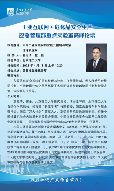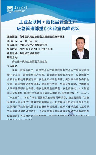 工業互聯網+危化品安全生產應急管理部重點實驗室是遵循統籌發展與安全的重要理念,面向我國?;飞a高質量發展的重大戰略需求,聚焦本質安全、數字化轉型等基礎科學及關鍵技術問題,由南京工業大學牽頭,協同中國安全生產科學研究院、中國工業互聯網研究院,充分發揮共建單位各自的人才、科研及產業化等優勢條件,依托化學工程與技術、安全科學與工程、控制科學與工程、應急管理等優勢學科群,深入開展工業互聯網+危化品安全生產領域的協同創新應用,培養國家緊缺急需的化工本質安全智能化交叉學科人才,開發國內領先、國際先進的創新成果并得到推廣應用,力求建成具有國際影響力的多學科交叉融合的“工業互聯網+?;钒踩a”創新平臺,為提升我國危化品安全生產應急管理體系監管能力和推進現代化建設提供科技支撐。實驗室從多尺度堆簇智能化本質安全、化工生產過程控制一體化安全、危化品全周期智慧監管與應急決策三個層面開展基礎研究、技術創新及智能裝備開發,構建工業互聯網生產大數據中心和安全生產標識解析體系標準,致力于解決制約多尺度堆簇智能化本質安全(點)、化工過程互聯控制一體化安全(線)、安全生產智慧監管與應急決策(面)的瓶頸問題。