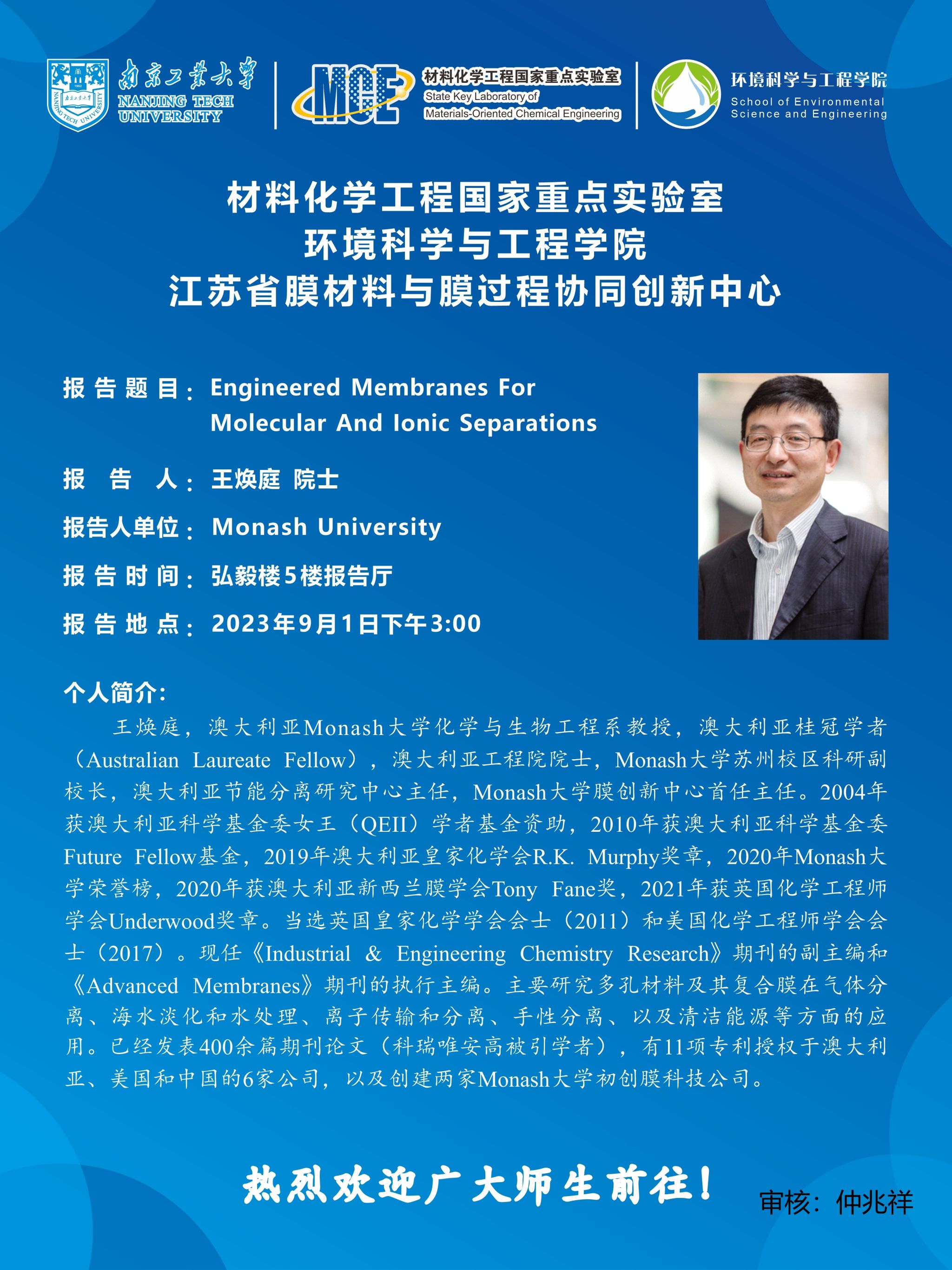 舉辦單位:材料化學工程國家重點實驗室、環(huán)境科學與工程學院、