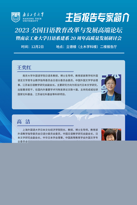 會議主題:2023年全國日語教育改革與發展論壇暨南京工業大學日語系建系20周年高質量發展研討會