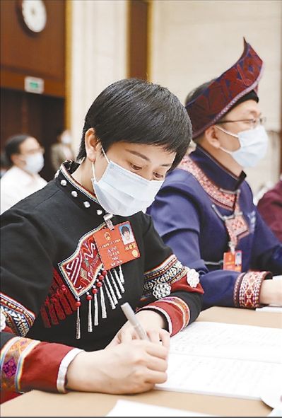 5月22日下午,廣西代表團舉行全體會議,一位代表在認真記錄。記者 林淵攝