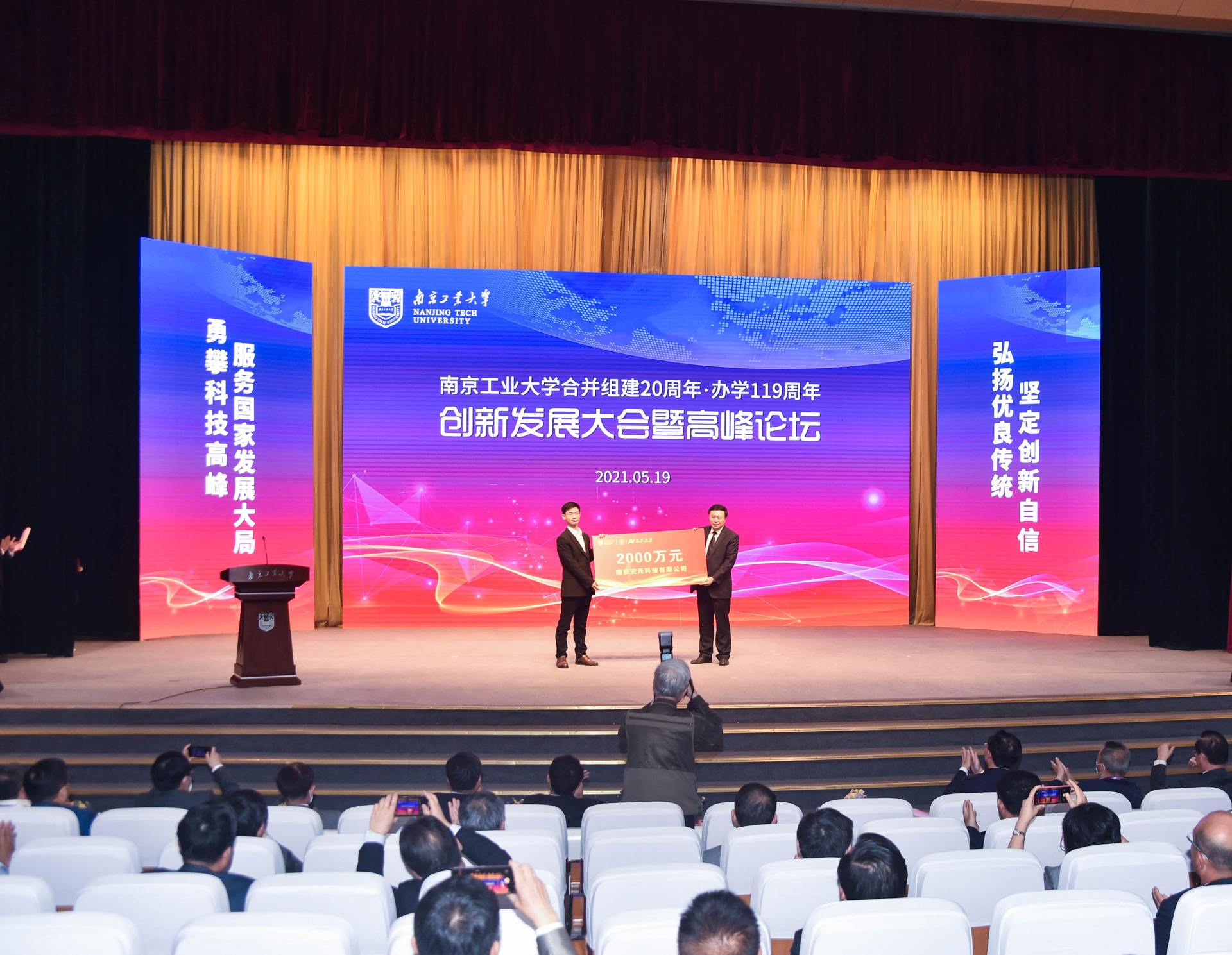 南京工業(yè)大學(xué)校友代表、安元科技公司創(chuàng)始人、董事長王三明向?qū)W校捐贈(zèng)價(jià)值2千萬元校園安防系統(tǒng),南工大供圖