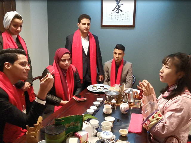 品茶藝、寫春聯(lián)、畫年畫、剪窗花、穿服飾、包餃子……近日,開羅大學(xué)孔子學(xué)院聯(lián)合在埃中企共同舉辦春節(jié)民俗文化體驗活動?;顒右浴爸邪9矚g慶 同過中國年”為主題,吸引來自開羅大學(xué)、艾因夏姆斯大學(xué)等5所埃及高校的師生及當(dāng)?shù)孛癖姺e極參與。體驗以游園會的方式進行,參與者每體驗一項,便獲得一枚“生肖印章”,集齊6枚就可以領(lǐng)取一份春節(jié)大禮包。