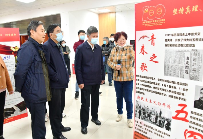 “上好思政課是落實立德樹人根本任務、培養擔當民族復興大業時代新人的重要要求。這次陳列展既是對黨的十九屆六中全會精神學習貫徹的堅決落實,又是推進黨史學習教育持續走深走實的具體實踐,同時也是我校思想政治理論課教學的一次深化改革和集中展示?!蹦瞎ご簏h委書記芮鴻巖說道。