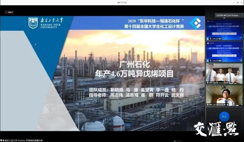 交匯點(diǎn)訊 乙烯產(chǎn)量是衡量一個(gè)國家石油化工生產(chǎn)水平的標(biāo)志,但每生產(chǎn)100萬噸乙烯,會伴隨產(chǎn)生15萬噸裂解碳五。2019年我國乙烯年產(chǎn)能已大幅增長至2889萬噸,碳五如何被有效利用并生產(chǎn)出有市場需求量的下游產(chǎn)品?在這道化工科技界面臨的挑戰(zhàn)性任務(wù)面前,近日,南京工業(yè)大學(xué)化工學(xué)院2017級靳曉雨、馬康、吳堂寅、李一鑫、楊丹等5位同學(xué)組成的Aurora團(tuán)隊(duì),以碳五烷烴為原料,設(shè)計(jì)了廣州石化年產(chǎn)4.6萬噸異戊烯項(xiàng)目,在“東華科技杯”第十四屆全國大學(xué)生化工設(shè)計(jì)競賽的賽場上,交出了滿意答卷,獲得特等獎。