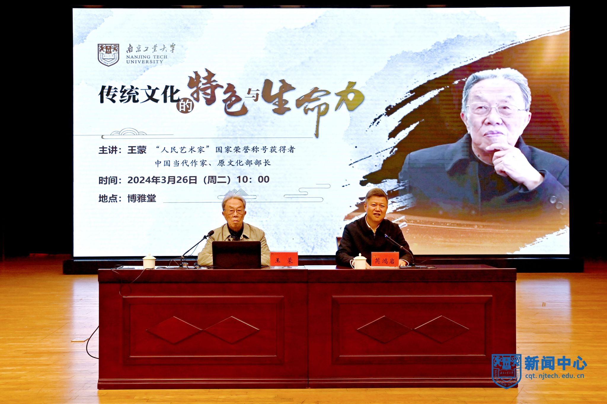 3月26日,“人民藝術家”國家榮譽稱號獲得者、中國當代著名作家、原文化部部長王蒙先生應邀來校,為廣大師生作《傳統文化的特色與生命力》的專題報告。原江蘇省政協主席、黨組書記,現江蘇省關工委主任張連珍同志出席報告會。校黨委書記芮鴻巖主持報告會。校領導吳勝紅、王敦寶、郭萬牛、劉大衛,校院兩級中心組成員、全體中層干部、思政課教師、輔導員、宣傳員及師生代表等在博雅堂聆聽了報告。