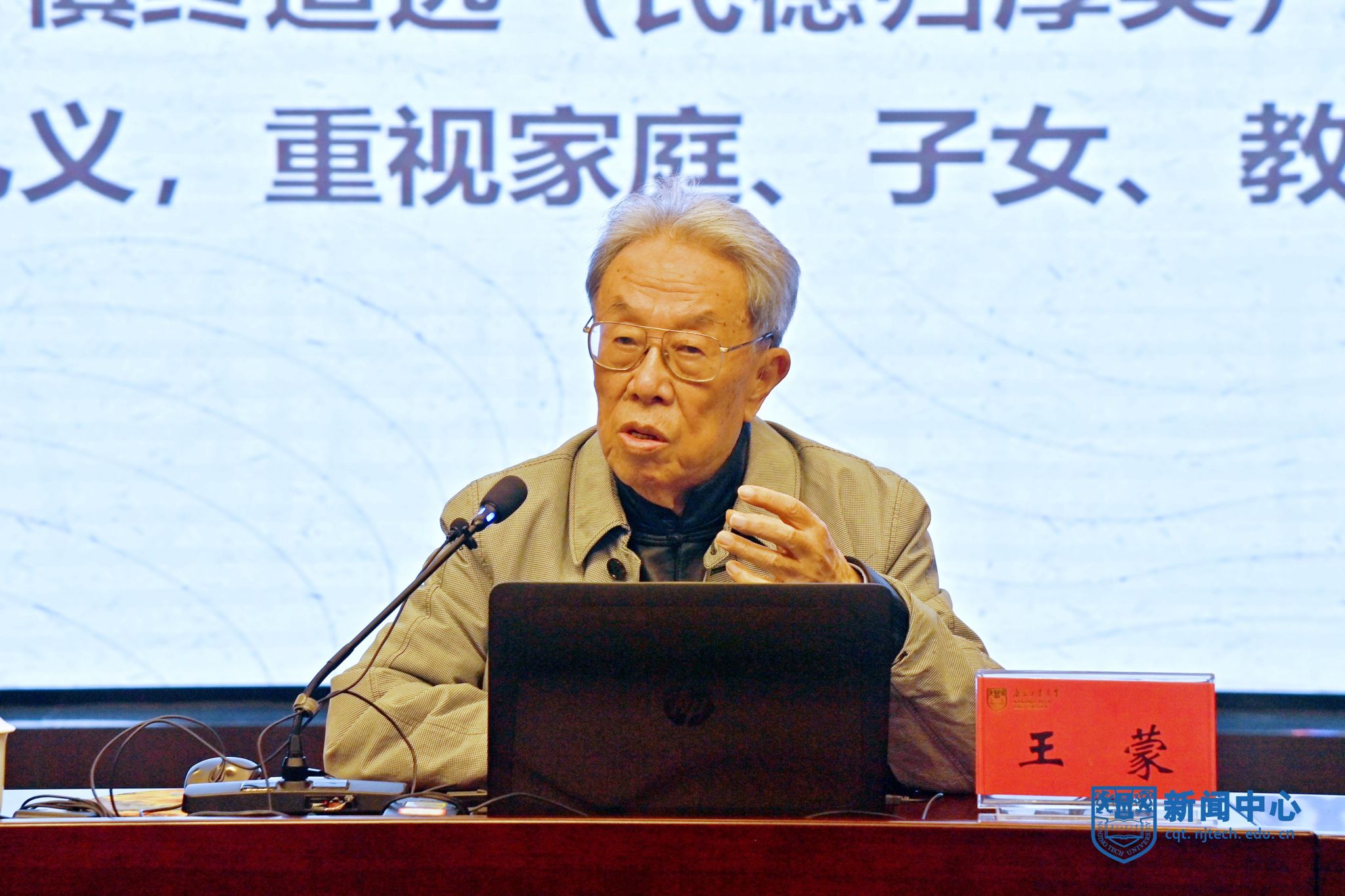 報告會上,年近九旬的王蒙先生以睿智深刻的語言娓娓道來,結合自身的研究、豐富的學養和切身體悟,深入淺出地講解了中華民族幾千年生生不息、持續發展的文化成因。先生精神矍鑠、博聞強記、思維敏捷,重點從中華文明“五個突出特性”、中華傳統思路“三性”、中華“三尚”、中國精神和“兩個結合”等五個方面,圍繞中華優秀傳統文化的特色與生命,傳統文化創造性發展、創新性轉化等進行了闡述。他從解讀文化與生活的關系出發,強調傳統文化對當下生活的共情性和精神支撐,揭示中華優秀傳統文化的豐厚內涵與深遠意義,回應時代對文化轉化與創新的呼喚,以深邃的理論思考、寬廣的歷史和文化視野,闡述傳統文化的特色,引發了廣大師生的共鳴與思考。