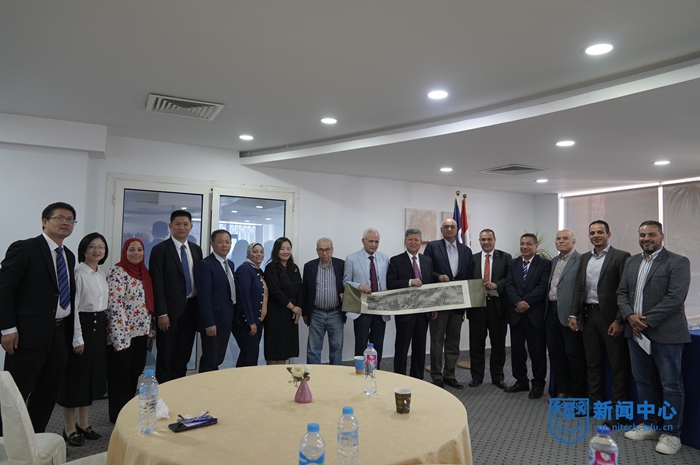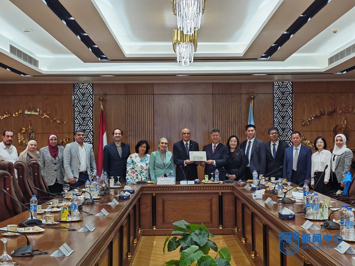 訪問埃及期間,我校代表團與埃及國家研究中心副主任馬姆杜·穆阿瓦德·阿里及相關分中心負責人舉行了雙邊會談,就深入推進多領域科研合作、開展來華留學生研究生聯合培養等事宜進行了會談,并舉行新型水技術聯合研究中心揭牌儀式,訪問了流感病毒卓越科學研究中心和環境變化及可持續發展卓越科學研究中心;與班達爾大學副校長阿姆魯及工程學院、語言學院、藝術學院等學院院長就學科合作、留學生聯合培養等開展深入交流,達成了兩校合作意向;與中國建筑股份有限公司埃及分公司董事長常偉才等進行了會見,就海外管理人才培訓、留學生訂單式培養等事宜開展交流,現場簽署了海外實習實踐基地協議,同時舉行了授牌儀式,參觀了由中建埃分公司承建的非洲第一高樓埃及新首都CBD標志塔。