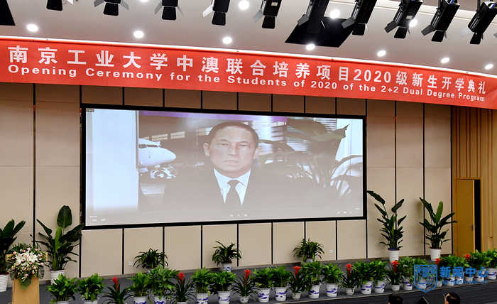 黨委常委、副校長牛生杰,黨委常委、黨委宣傳部部長張健,教學事務部、學生事務部、電氣工程與控制科學學院、數理科學學院、經濟與管理學院負責人和教師代表出席了開學典禮。昆士蘭大學常務副校長李榮譽、工程建筑信息技術學院副院長亞里克桑德拉·瑞克,麥考瑞大學副校長妮可·布里格、國際部執行部長大衛·哈里森通過在線互聯的方式出席了開學典禮。開學典禮由海外教育學院院長王志榮教授主持,2020級中澳項目全體新生參加了典禮。