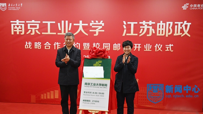 活動中,郭萬牛與俞澤昕簽訂戰略合作協議。芮鴻巖與陳智泉共同為“南京工業大學郵局”揭牌,現場嘉賓和師生共同見證“南京工業大學郵局”正式投入運營。夏侃與南京郵政分公司黨委書記、總經理張新華共同為“南京工業大學紀念封”揭幕。
