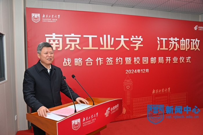 12月4日下午,我校與江蘇郵政戰略合作簽約暨校園郵局開業儀式在江浦校區東苑快遞服務點舉行。中國郵政江蘇省分公司黨委書記、總經理陳智泉,副總經理俞澤昕,校黨委書記芮鴻巖,黨委常委、黨委宣傳部部長夏侃,黨委常委、黨委辦公室主任、黨委統戰部部長黃鎖明出席簽約儀式。活動由副校長郭萬牛主持。