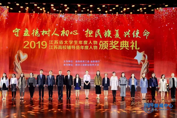 2020年11月15日,由江蘇省教育工委、江蘇省教育廳主辦的“2019江蘇省大學生年度人物和高校輔導員年度人物”頒獎典禮在南京工業職業技術大學仙林校區大學生創新發展中心劇場舉行。