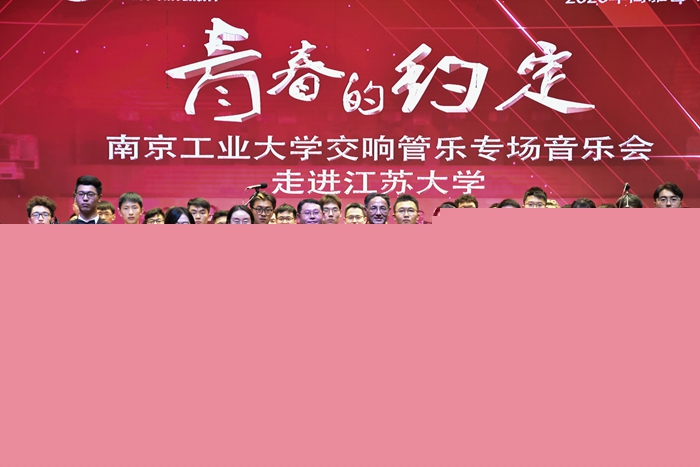 11月15日晚,由江蘇省教育廳、江蘇省財(cái)政廳聯(lián)合主辦,2020年高雅藝術(shù)進(jìn)校園拓展項(xiàng)目——我校交響管樂專場(chǎng)音樂會(huì)《青春的約定》在江蘇大學(xué)小禮堂傾情上演。我校黨委副書記吳勝紅,江蘇大學(xué)黨委副書記李洪波,兩校團(tuán)委負(fù)責(zé)人及現(xiàn)場(chǎng)師生共同欣賞了音樂會(huì)。