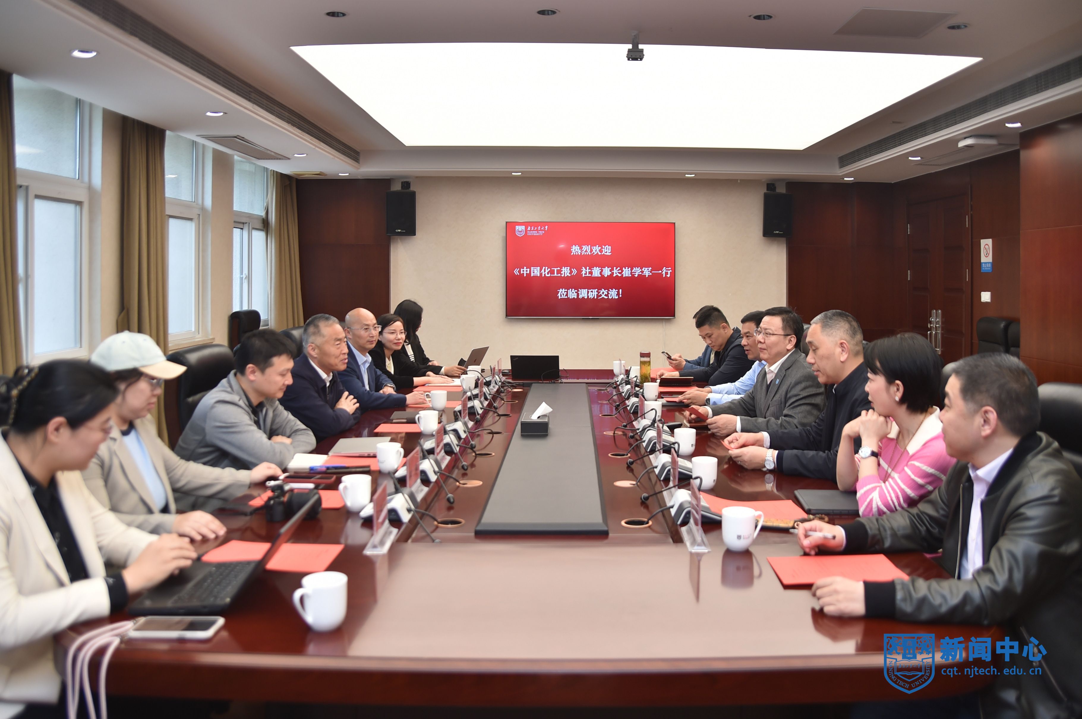 4月7日,《中國化工報》社黨委書記、董事長崔學軍一行來校調研交流,校長蔣軍成、副校長顧學紅在明正樓會議室與來賓座談。