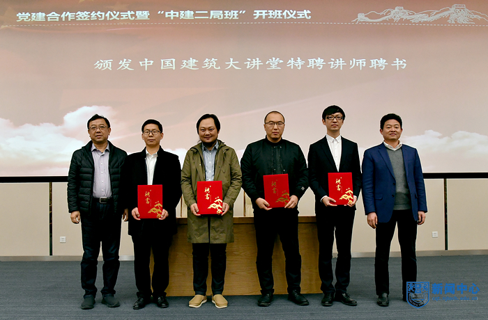 土木工程學院院長王曙光對中建二局的到訪表達了誠摯歡迎與感謝,指出土木學院和中建二局在支部共建、學科發展、人才培養、科研創新、產學融合上有著深層次的合作空間,努力把握時代機遇推進構建雙贏格局來日可期。儀式上,土木學院與中建二局簽署了《支部共建協議》和《青年教師掛職鍛煉協議》,中建二局為土木學院青年教師頒發了掛職教師聘書,相關領導為中建二局骨干頒發了校外輔導員、校外就業指導專家、中國建筑大講堂特聘講師聘書。校、企雙方領導共同為新建的“中建二局班”舉行了揭牌儀式。