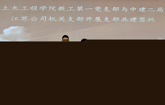 為深入推進“南工-中建”戰略對接,全方位構建戰略合作體系,11月25日下午17時,南京工業大學土木工程學院與中建二局在弘毅樓五樓報告廳舉辦黨建合作簽約儀式暨“中建二局班”開班儀式。副校長李世收,校黨委常委、黨委組織部部長郭萬牛,校黨委常委、黨委宣傳部部長張健,黨委學生工作部、黨委研究生工作部、教學事務部主要負責人,中建二局人力資源部副總經理于震,土木工程學院領導班子、教師代表和中建二局職工代表參加活動。