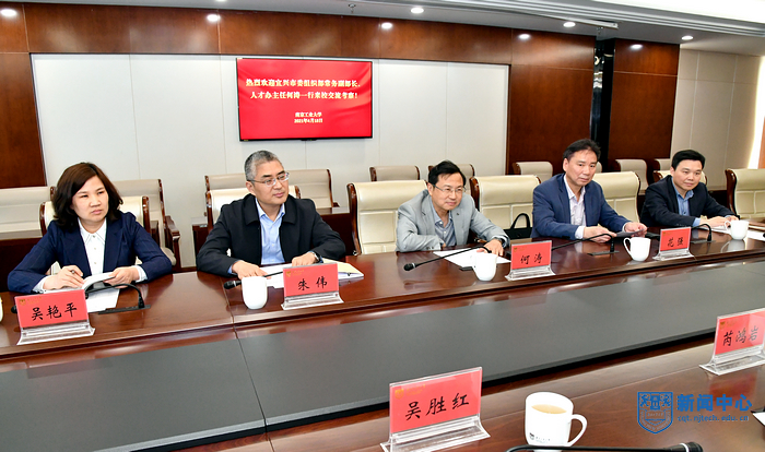 4月18日下午,宜興市委組織部常務副部長、人才辦主任何濤一行來校交流考察。校黨委書記芮鴻巖、黨委副書記吳勝紅出席座談會。