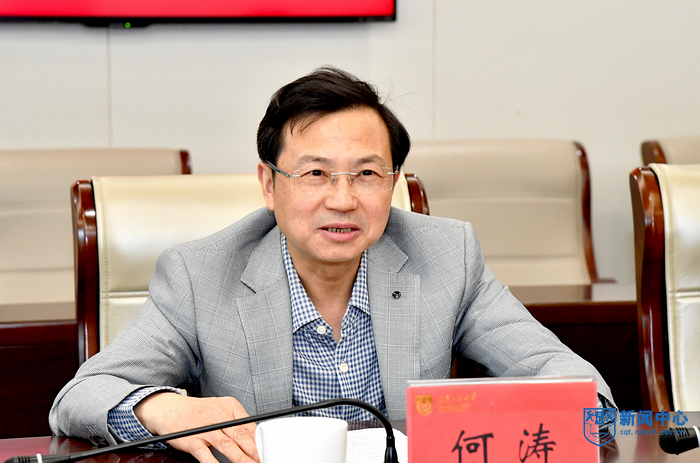 芮鴻巖書記對何濤部長一行的到來表示熱烈歡迎,并用“個”“十”“百”“千”“萬”形象生動地介紹了學校的歷史沿革、辦學特色、標志成果和發展愿景。希望雙方未來進一步加強學生就業、博士后聯合培養、青年人才匯聚、科技項目孵化等方面的合作交流。