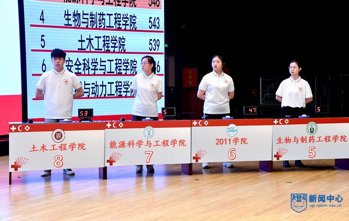 本次大賽由校團委、后勤保障處、校紅十字會主辦,生物與制藥工程學院團委承辦,共有23支隊伍參賽。經過預賽選拔,共有8支代表隊入圍決賽。8支學院代表隊經過心肺復蘇、創傷救護、理論答題等環節的角逐,最終,生物與制藥工程學院代表隊斬獲一等獎,法政學院、材料科學與工程學院獲二等獎,土木工程學院、2011學院、機械與動力工程學院獲三等獎。能源科學與工程學院獲大賽道德風尚獎,安全科學與工程學院獲最佳組織獎。