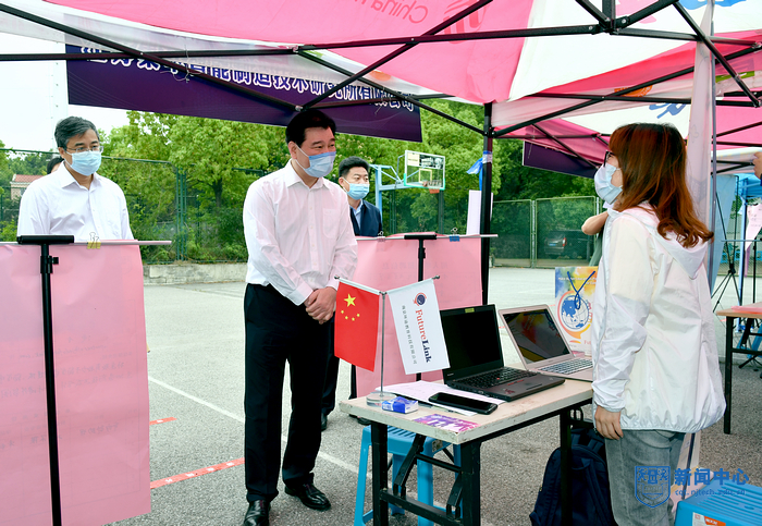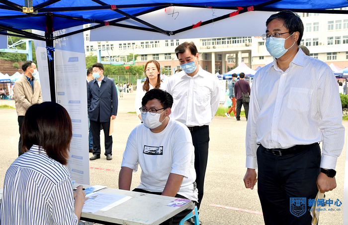 省委教育工委副書記蘇春海蒞臨招聘會現場進行指導。他表示,南工大在全國兩會后率先啟動線下招聘會,為畢業生高質量就業搭建平臺,開了個好頭。各高校要在采取疫情防控措施、保證安全的前提下,更加有序高質量地組織好線下招聘。