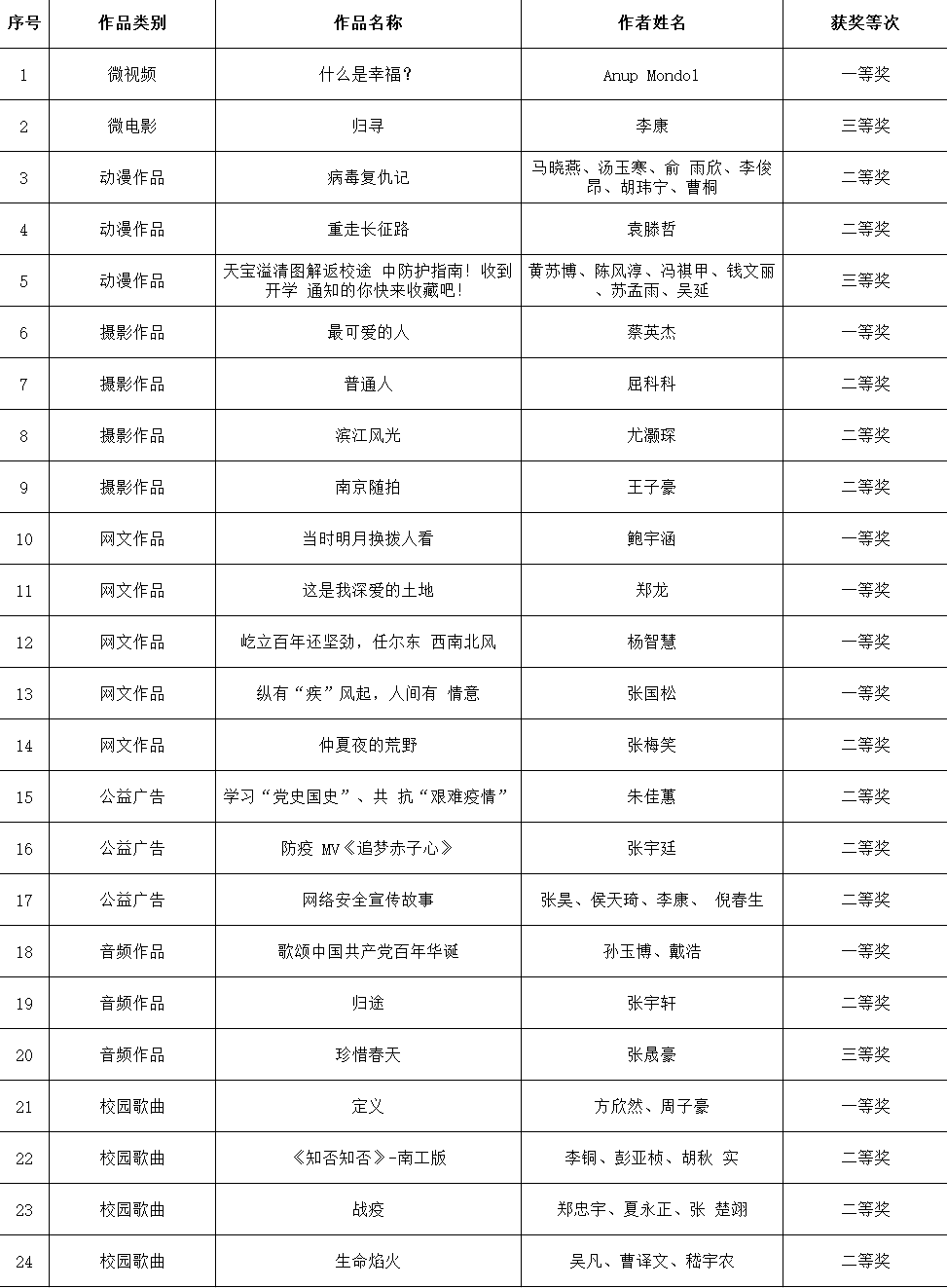 近日,省委教育工委、省教育廳公布2020年度“江蘇省大學生網絡文化節”評選結果,我校榮獲優秀組織獎,共有24件作品獲獎,其中一等獎8件、二等獎13件、三等獎3件。