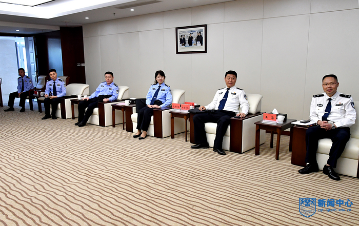 5月21日,南京市江北新區公安分局黨委書記、局長楊健一行來我校調研交流。黨委書記芮鴻巖、校長喬旭、副校長鞏建鳴在弘毅樓接待室會見了來賓,校長辦公室、實驗室建設與管理處、保衛處負責人參加交流。