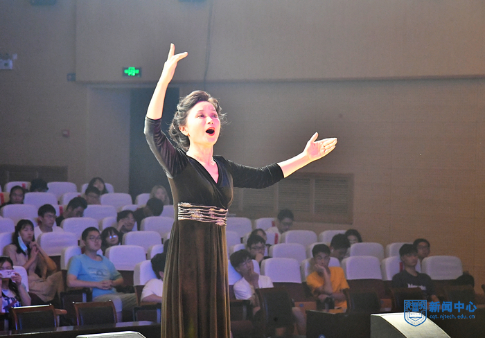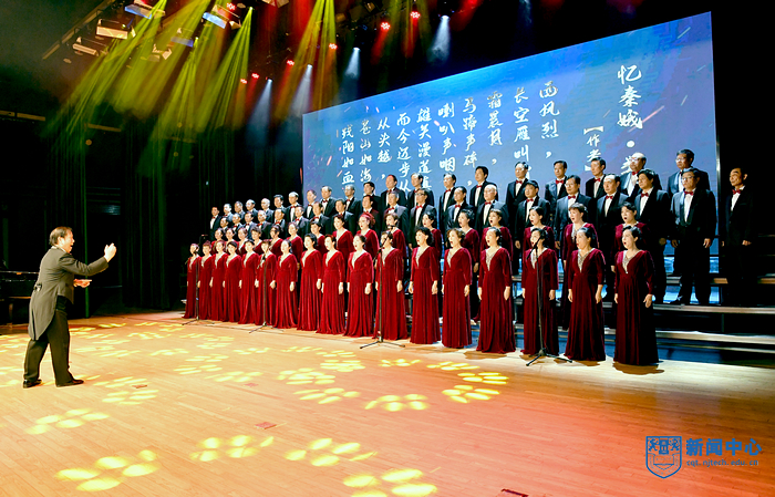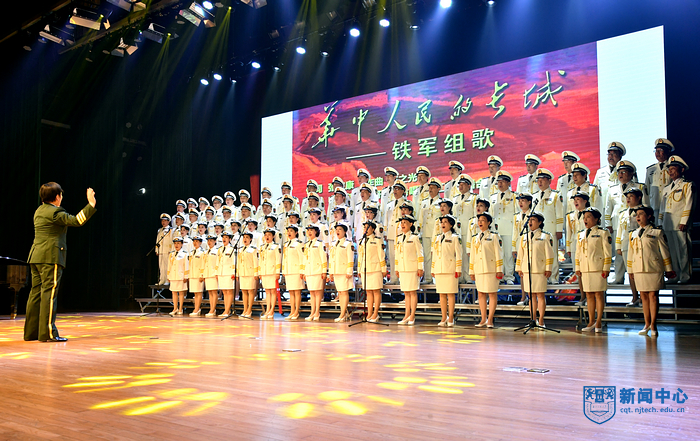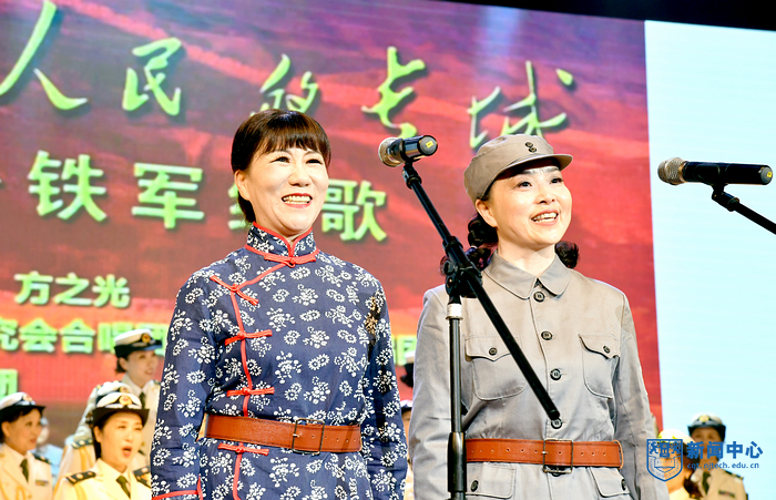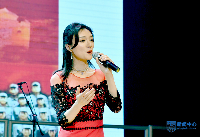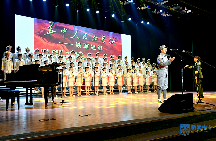 演出在混聲合唱《婁山關》中拉開序幕,《眷戀》娓娓動聽,《跟你走》歌聲悠揚,渲染了濃烈的愛黨與愛國情感;配樂詩朗誦《百年輝煌》抑揚頓挫,回顧了黨波浪壯闊的百年征程;女聲組合《祖國戀歌》抒發了中華兒女對祖國母親的依戀和崇敬;男聲小合唱《精兵強將進行曲》鏗鏘有力,展現了中國青年斗志昂揚的精神面貌;舞蹈《我們的新時代》熱烈地贊美與謳歌偉大新時代;混聲合唱《獻給無名烈士的歌》莊重動人,《丁香的故事》用細膩的樂曲再現革命烈士無悔的精神。藝術團精選了《鐵軍組歌》中部分歌曲,《寶塔山的召喚》《集結云嶺》《東進告捷》等曲目表演熱情謳歌了新四軍不畏強敵、不怕犧牲、舍身為國、前仆后繼的英雄壯舉,合唱《在燦爛的陽光下》訴說了對黨的感恩和熱愛,表達了堅定跟黨走、建功新時代的心聲和誓言。一曲曲由藝術團原創或改編的紅色經典作品經過演員們的傾心演繹,精彩絕倫,令人震撼,贏得了現場觀眾的陣陣掌聲。最后,校黨委副書記吳勝紅、黨委常委、宣傳部部長張健和現場師生與全體演員合唱《沒有共產黨就沒有新中國》。
