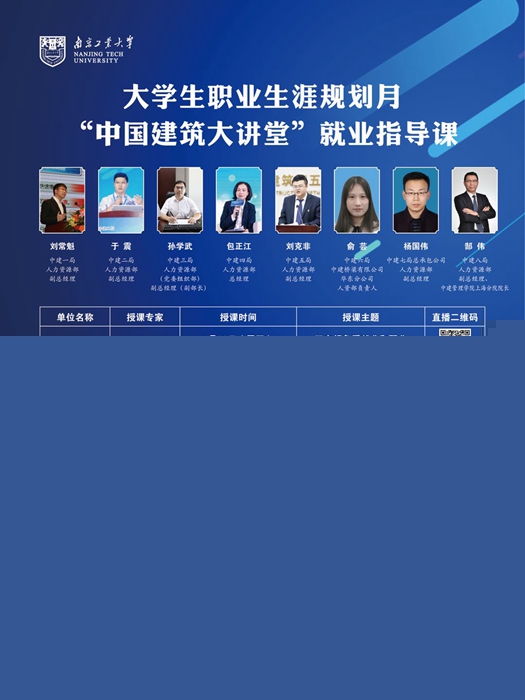 中建一局劉常魁、中建二局于震、中建三局孫學武、中建四局包正江、中建五局劉克非、中建六局俞蕓、中建七局楊國偉、中建八局郜偉等八位專家分別就土建行業的現狀和未來發展方向以及企業選人育人模式、疫情對當前國內形勢的沖擊以及對畢業生就業的影響、大學生面試注意事項和職業生涯規劃等三方面進行了深入分析,并通過諸多實例,說明投身土建行業助力國家基礎設施建設大有可為,豐富了畢業生對就業新形勢的認識,為畢業生自主擇業、科學就業提供了積極幫助。