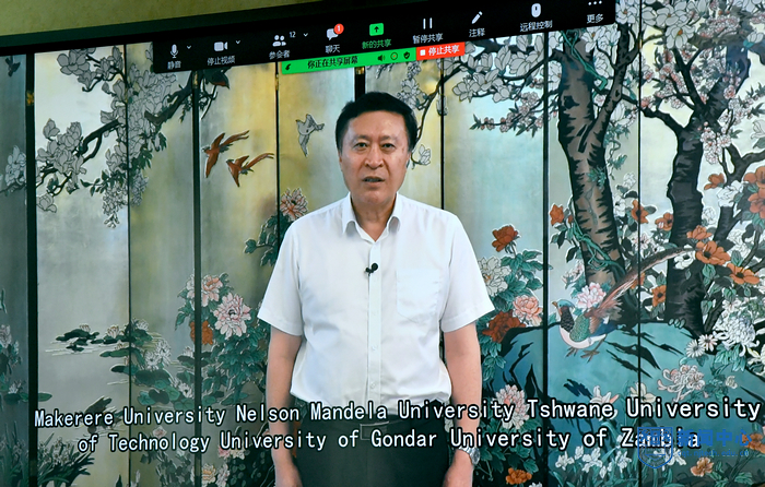 喬旭校長(zhǎng)以視頻形式致辭,向中國(guó)駐南非大使館和達(dá)克拉院士的牽線搭橋和鼎力支持表示誠(chéng)摯感謝,向與會(huì)的非洲高校代表致以誠(chéng)摯問(wèn)候。他指出,我校歷來(lái)重視與非洲高校的交流合作,也具備良好的中非合作基礎(chǔ),期待與非洲高校在開(kāi)展國(guó)際合作辦學(xué),聯(lián)合培養(yǎng)社會(huì)所需人才;聯(lián)合開(kāi)展科學(xué)研究,共建國(guó)際科研合作平臺(tái);推進(jìn)科技成果轉(zhuǎn)讓,共建“中國(guó)-非洲”產(chǎn)業(yè)園等方面推進(jìn)合作。