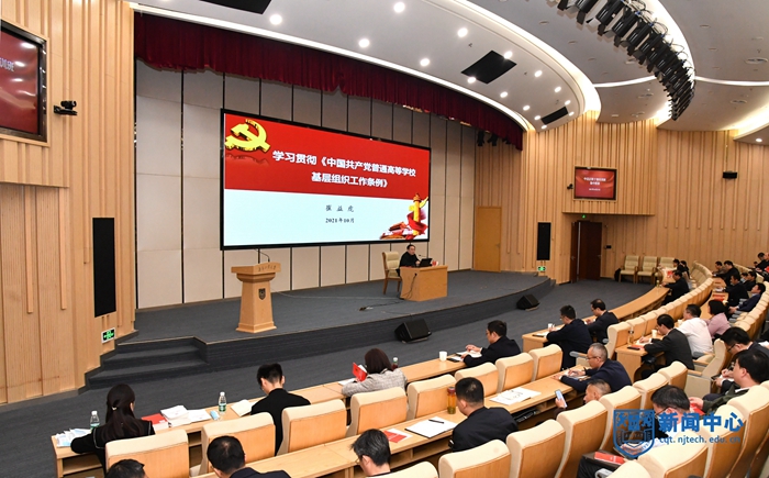 校黨委副書記崔益虎以《<中國共產黨普通高等學?;鶎咏M織工作條例>解讀》為題,對《條例》修訂的時代背景、重要意義以及基本原則進行闡述,結合省委組織部、省委教育工委《關于貫徹落實<中國共產黨普通高等學?;鶎咏M織工作條例>若干措施》的通知精神,對我校貫徹《條例》的任務分解與落實舉措進行重點解讀,強調要把貫徹落實《條例》與巡視整改結合起來,與推進“兩在兩同”建新功和為群眾辦實事結合起來,有力有序有效推進各項工作落實落地。