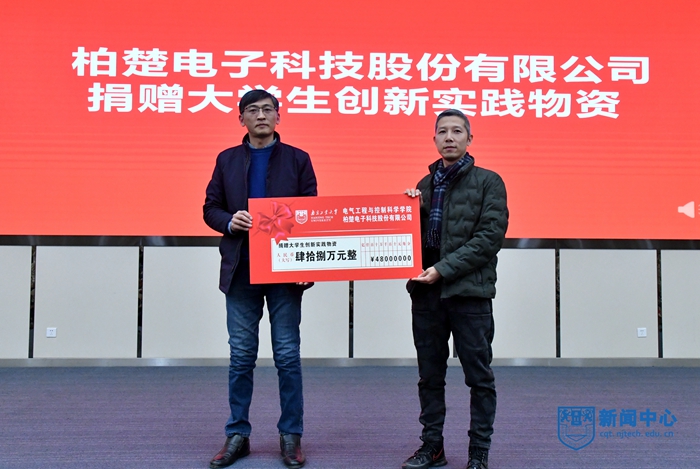張健部長為工作室成員頒發聘書。鞏建鳴副校長為唐曄、馮長有、陳俊三位專家頒發兼職教授聘書。唐曄校友作交流發言,并為電控學院捐贈大學生創新實踐物資,電控學院院長方志代表學院受贈。吳勝紅副書記為與會企業院所負責人進行黨建育人實踐基地授牌。