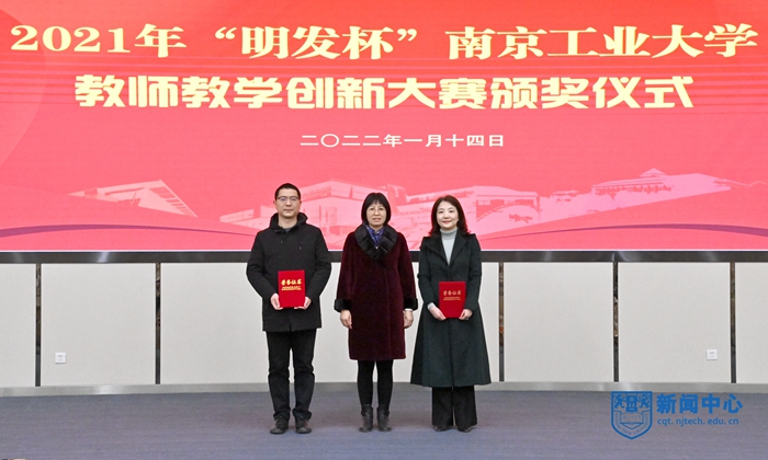 2022年1月14日下午,學(xué)校在弘毅樓五樓報(bào)告廳隆重舉行2021年“明發(fā)杯”南京工業(yè)大學(xué)教師教學(xué)創(chuàng)新大賽頒獎(jiǎng)典禮,校黨委書(shū)記芮鴻巖,黨委常委、副校長(zhǎng)鞏建鳴出席大會(huì)并為獲獎(jiǎng)教師頒獎(jiǎng)。校教育發(fā)展基金會(huì)、教務(wù)處、人事處及對(duì)外合作與發(fā)展處等職能部門負(fù)責(zé)人、各學(xué)院教學(xué)院長(zhǎng)及全體獲獎(jiǎng)教師參加會(huì)議。會(huì)議由教務(wù)處處長(zhǎng)陸偉東主持。