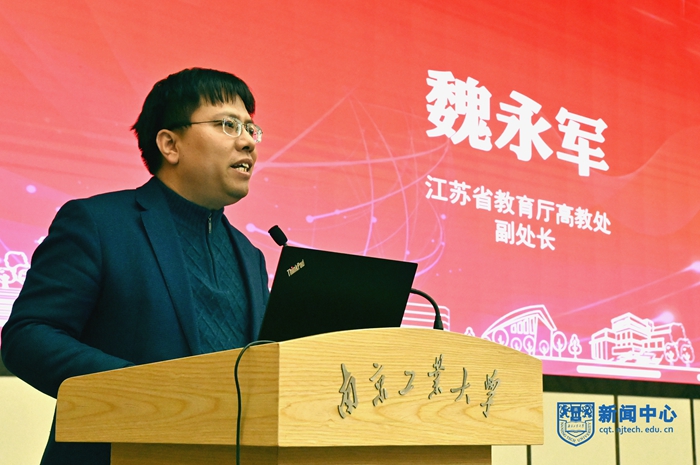 魏永軍副處長對我校創新創業人才培養工作給予了充分肯定,滿懷深情地回顧了在南工大舉辦第二屆江蘇省“互聯網+”創新創業大賽的經歷,并提出四點建議,一是聚焦根本問題,堅持立德樹人根本任務;二是強化頂層設計,進一步推動雙創教育、專業教育和思想政治教育深度融合;三是推進體系建設,將雙創教育貫穿教育鏈、創新鏈、孵化鏈、產業鏈全過程;四是構建育人生態,將雙創教育做為人才培養中的一個重要的改革突破口。