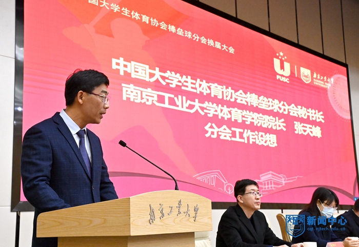 中國大學生體育協會棒壘球分會秘書長、南京工業大學體育學院院長張天峰從堅持立德樹人根本任務、增強校際和國際賽事交流、加強棒壘球專業人才培訓、推進產教融合開拓棒壘球運動市場等方面,向與會代表匯報了中國大學生體育協會棒壘球分會的工作設想。