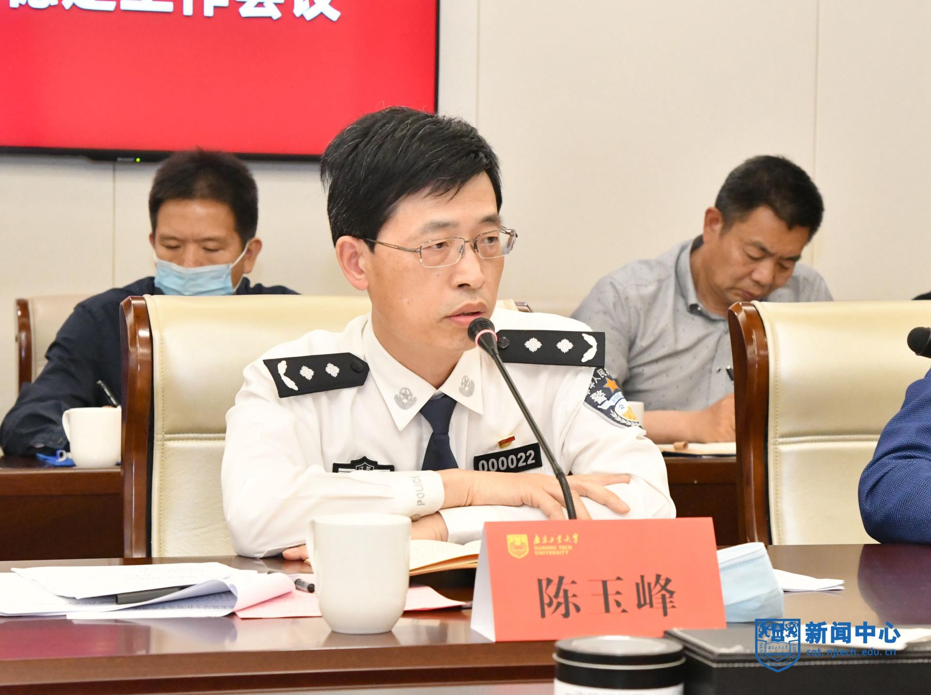 5月19日下午,駐寧高校安全穩定工作會議在我校江浦校區弘毅樓三樓會議室召開。省公安廳內保總隊總隊長陳玉峰、省教育廳安穩處二級調研員金劍、市公安局內保支隊政委姜國文,我校黨委副書記吳勝紅出席會議。會議由市公安局內保支隊副支隊長盧才勇主持。