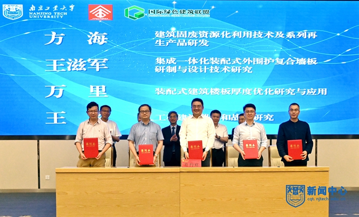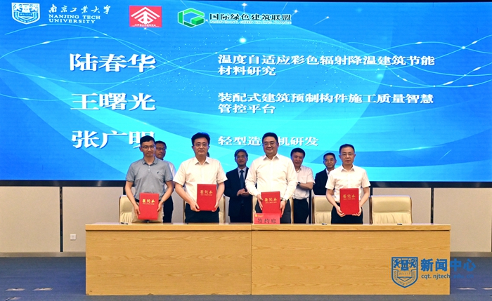 開幕式結(jié)束后,進行了南京工業(yè)大學——中建三局工程建設(shè)碳中和研究院重大項目簽約儀式,陸偉東副校長與“揭榜掛帥”項目負責人分別簽約。