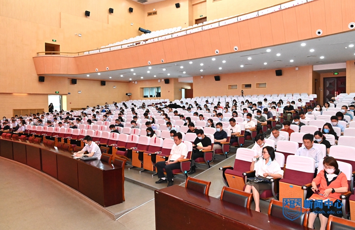 中層正職班、中層副職班、第3期“青年骨干”班學員,以及思政課教師、輔導員、組織員、新進教師、分工會主席、教務管理人員、黨支部書記等代表在博雅堂參會,其他各專題班學員在線上參會。