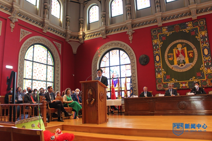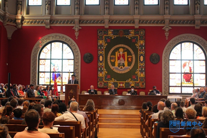 近日,我校薩拉戈薩大學孔子學院成立五周年慶典活動在薩拉戈薩大學大禮堂舉行。中國駐西班牙大使吳海濤、西班牙阿拉貢地區政府主席哈維爾·蘭班·蒙塔涅斯、薩拉戈薩市市長豪爾赫·阿松·納瓦羅、薩拉戈薩大學校長何塞·安東尼奧·馬約拉爾、西班牙10余所孔院的中外方院長等嘉賓現場出席了慶典活動,校長喬旭發表了視頻致辭。