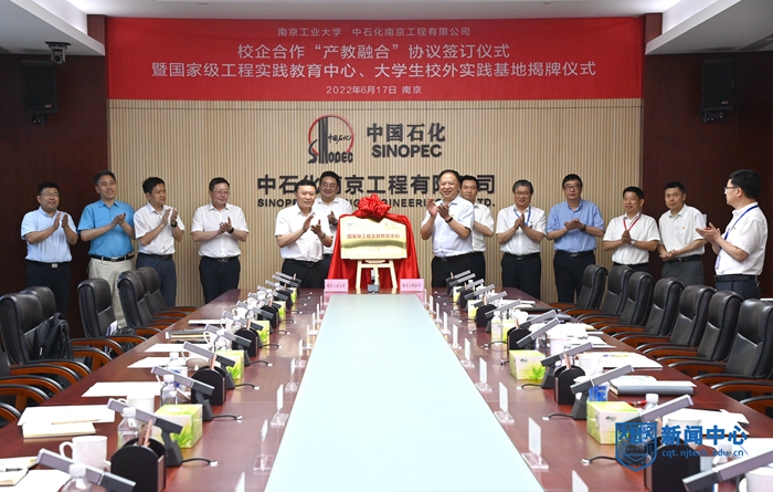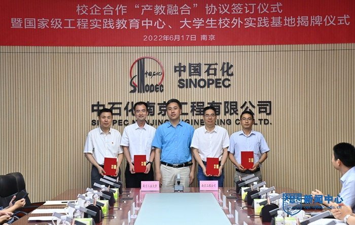 6月17日下午,校長喬旭,黨委常委、副校長陸偉東一行訪問中石化南京工程有限公司,雙方簽訂了校企合作產教融合協議,并為國家級工程實踐教育中心、大學生校外實踐基地揭牌。中石化南京工程有限公司執行董事、黨委書記周贏冠,總經理、黨委副書記吳吉波出席活動。