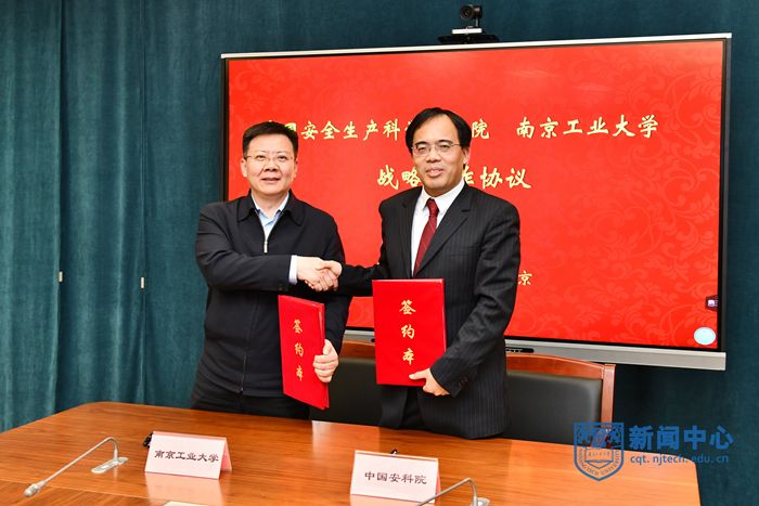 3月22日下午,我校與中國安全生產科學研究院在北京簽署戰略合作協議。中國安全生產科學研究院院長周福寶、副院長胡萍、我校校長蔣軍成出席簽約儀式。