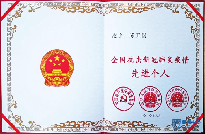 陳衛國校友榮獲“全國抗擊新冠肺炎疫情先進個人”